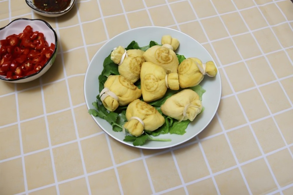 虾仁福袋是以鲜虾仁为主馅,裹入豆腐皮或蛋皮制成的精致美食,外皮滑嫩内馅Q弹,蒸煮后鲜香四溢,兼具颜值与风味。